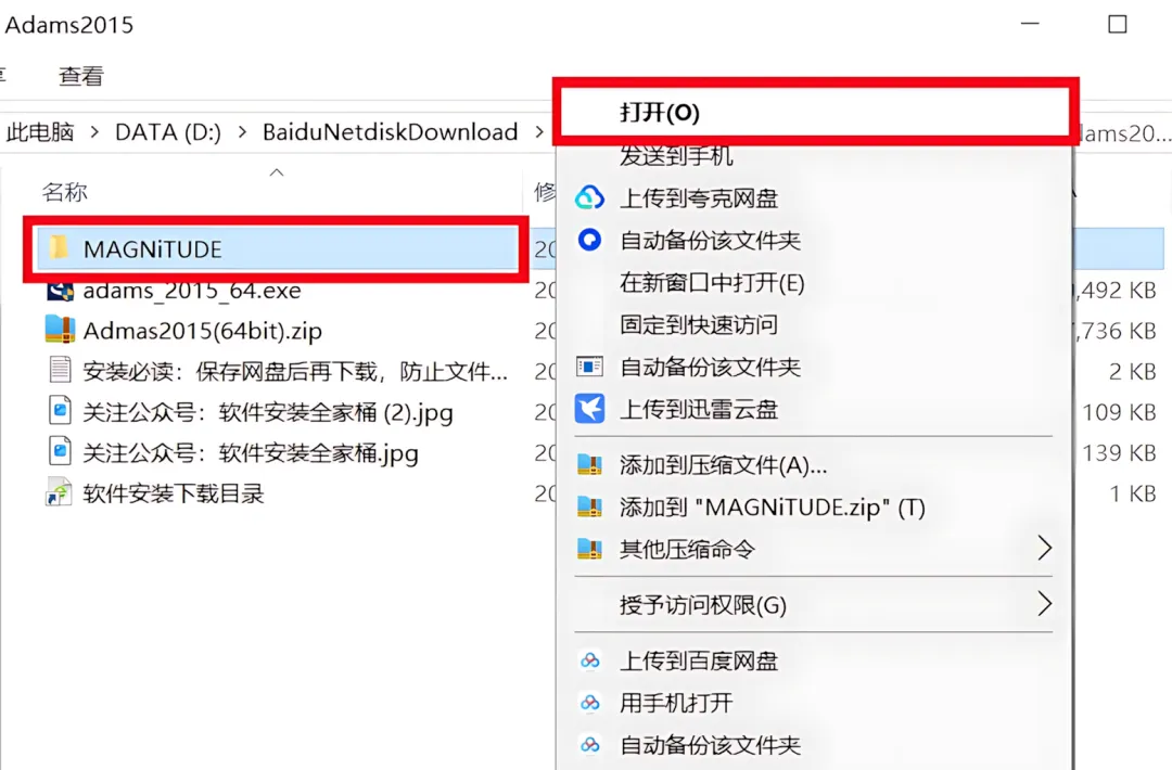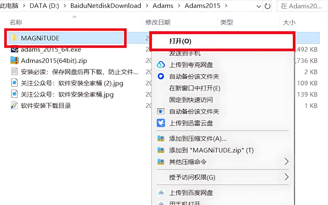 8.打开安装包解压后的【Admas2015(64bit)】文件夹,右击打开【MAGNiTUDE】文件夹。