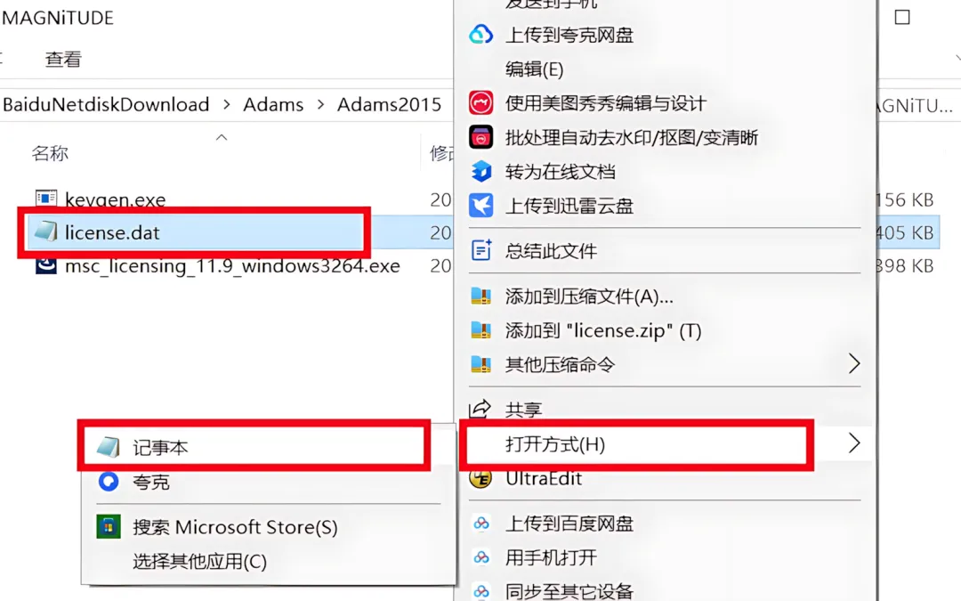 3.鼠标右击【license】选择【打开方式】,选择【记事本】,点击【确定】(打开后不要关闭)。