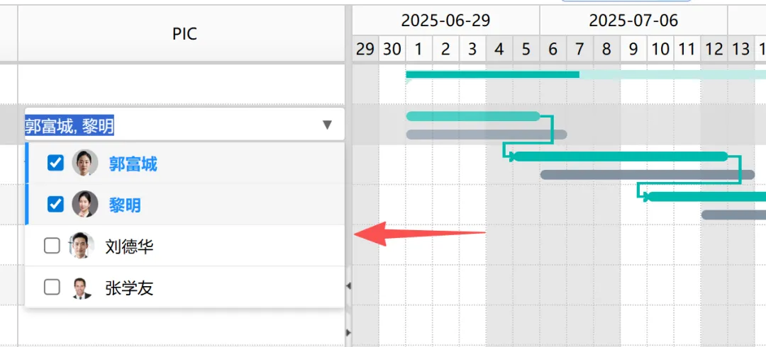 MZGantt中,如何实现如图的下拉列表框?