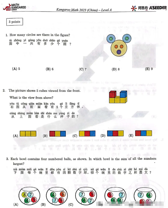 袋鼠数学竞赛2023年真题【L1】