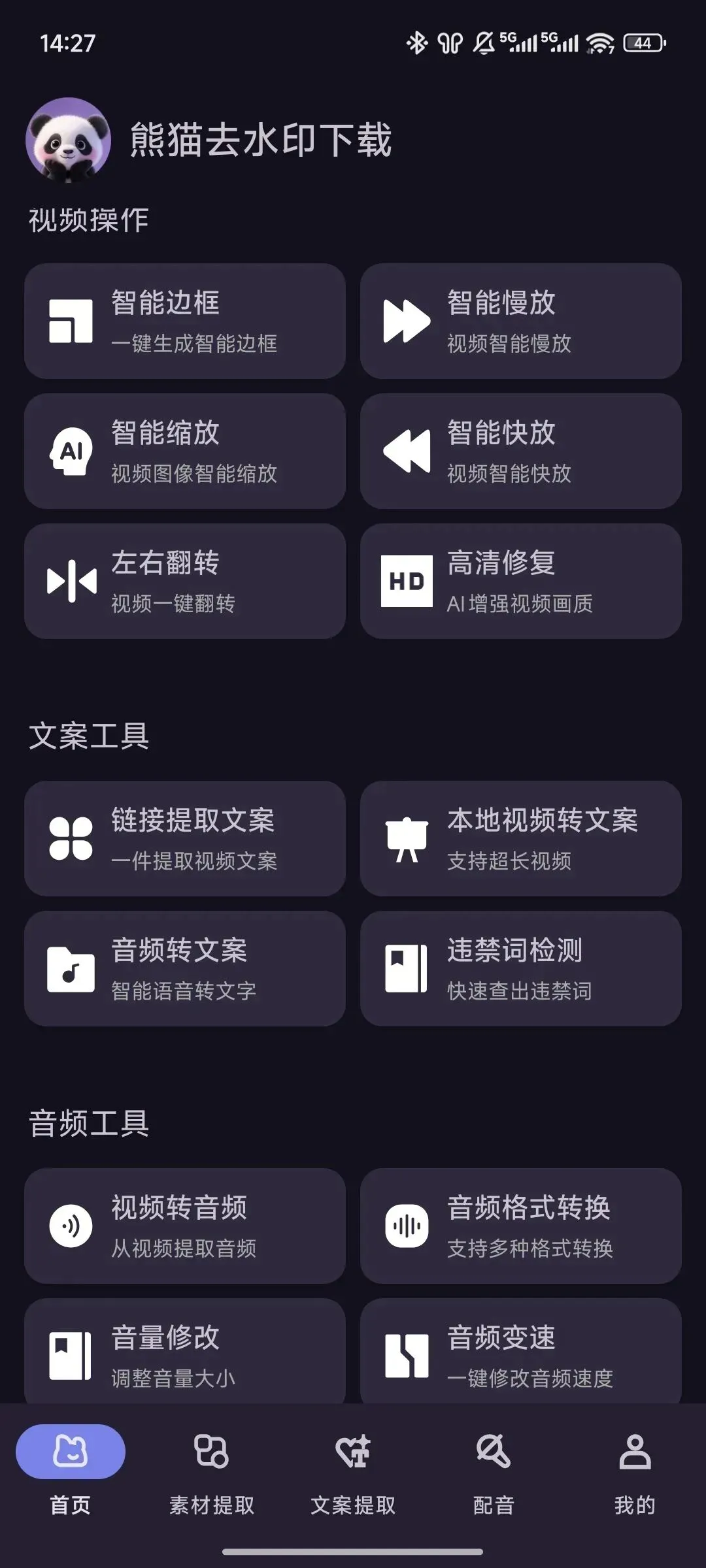 除此之外,还有很多其他的功能,比如配音功能(一键文本转语音)、批量MD5修改、视频一键清晰、音频转文案等等,大家可以自己去看看。
