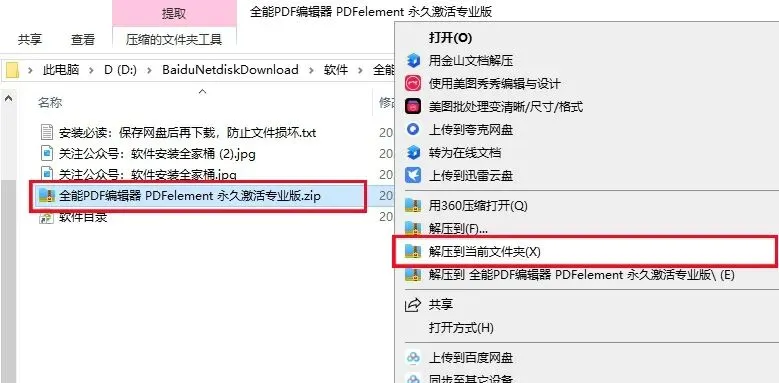 1、打开下载好的文件夹,鼠标右击选择【解压到当前文件夹】。