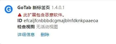 关于Gotab新标签页插件在Edge浏览器商店被认定有恶意程序且被下架的说明