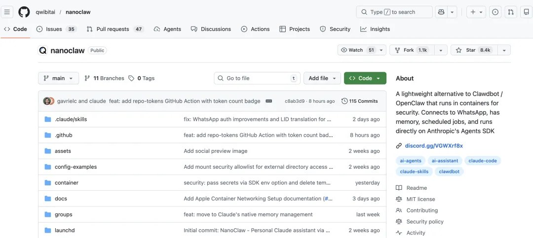 OpenClaw 安全噩梦终结者来了!NanoClaw 用容器隔离+几千行代码,直接把 Claude 塞进 WhatsApp,8分钟读懂全源码,8.4K星暴涨中!