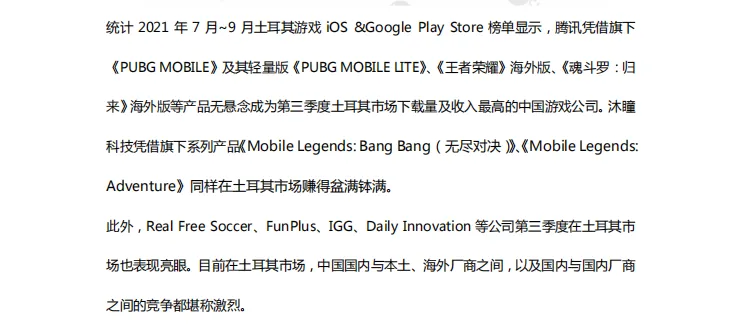 《DUG:2021 秋季中东市场中国 APP 出海启示录》显示,中东互联网渗透率达 58.7%,土耳其、沙特、阿联酋为核心市场。报告重点分析游戏类策略 / 角色扮演品类、非游戏类视频社交 / 编辑应用表现突出,本地化运营成破局关键。