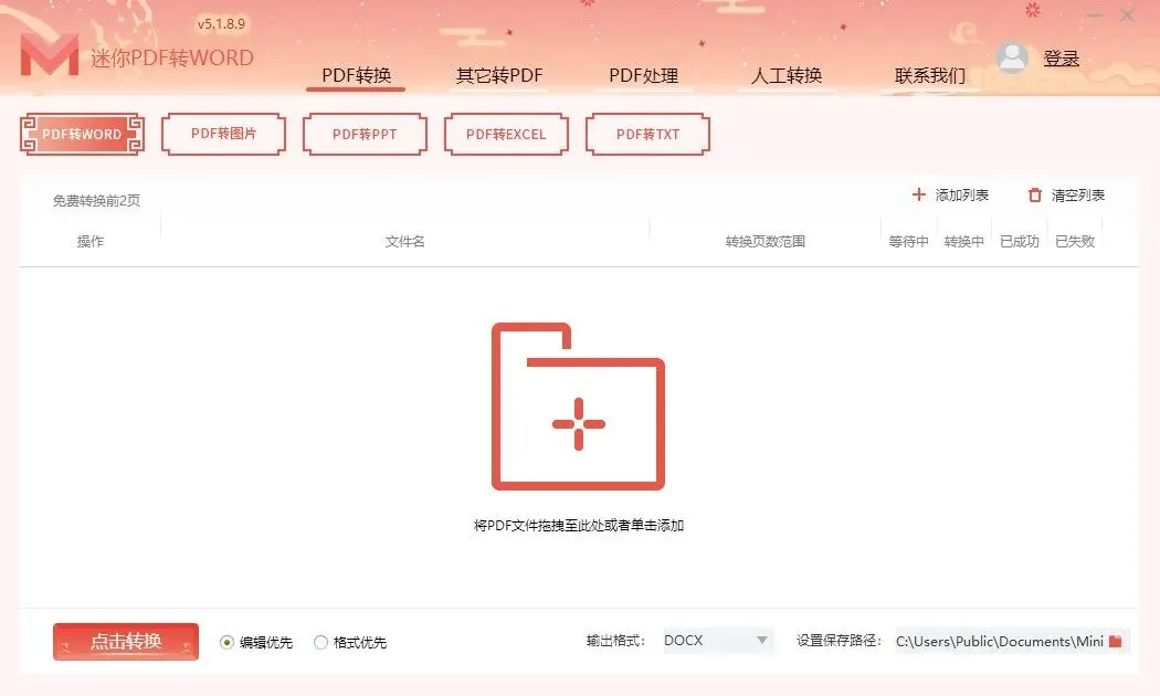 迷你PDF转WORD官方版就是为这个场景准备的。它体积非常小,但核心功能没缩水:PDF 转 WORD、WORD 转 PDF,双向都支持。非扫描件的 PDF 转完能直接编辑,不用再 OCR 折腾一遍。