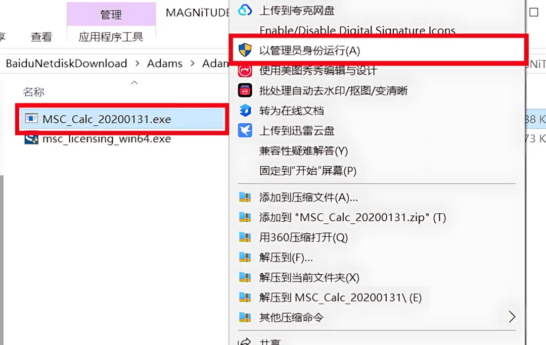 3.鼠标右击【MSC_Calc_20200131】选择【以管理员身份运行】。