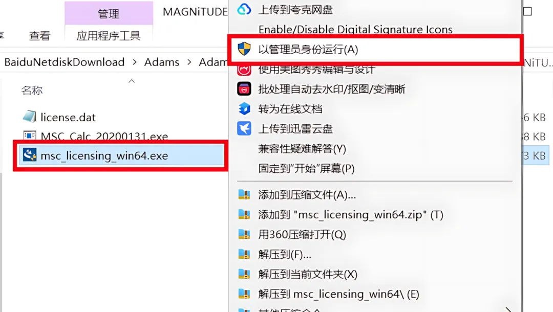 7.鼠标右击该文件夹下的【msc_licensing_softgj_win64_a】选择【以管理员身份运行】。