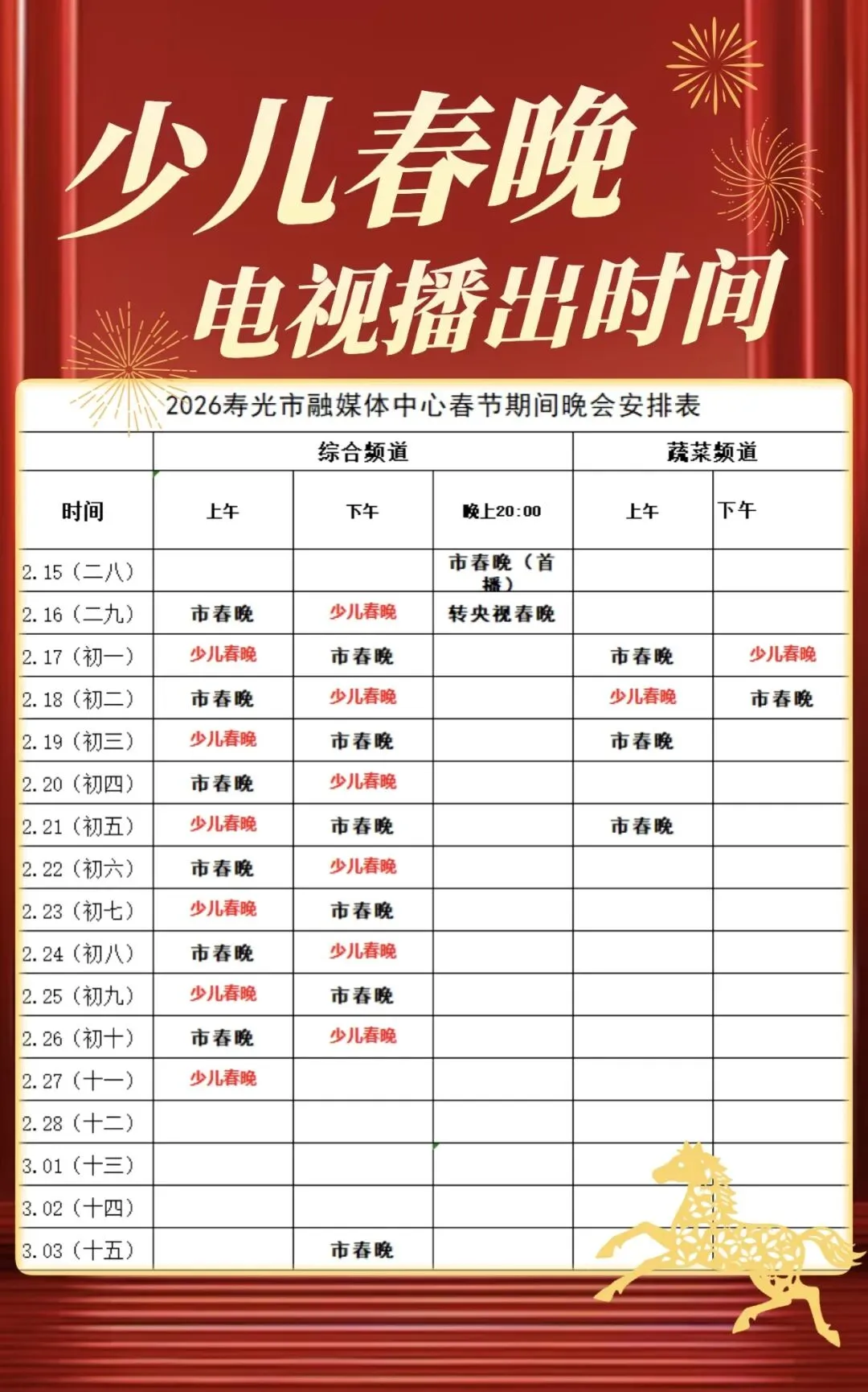 2026寿光市少儿春晚电视及寿光云APP播出时间安排