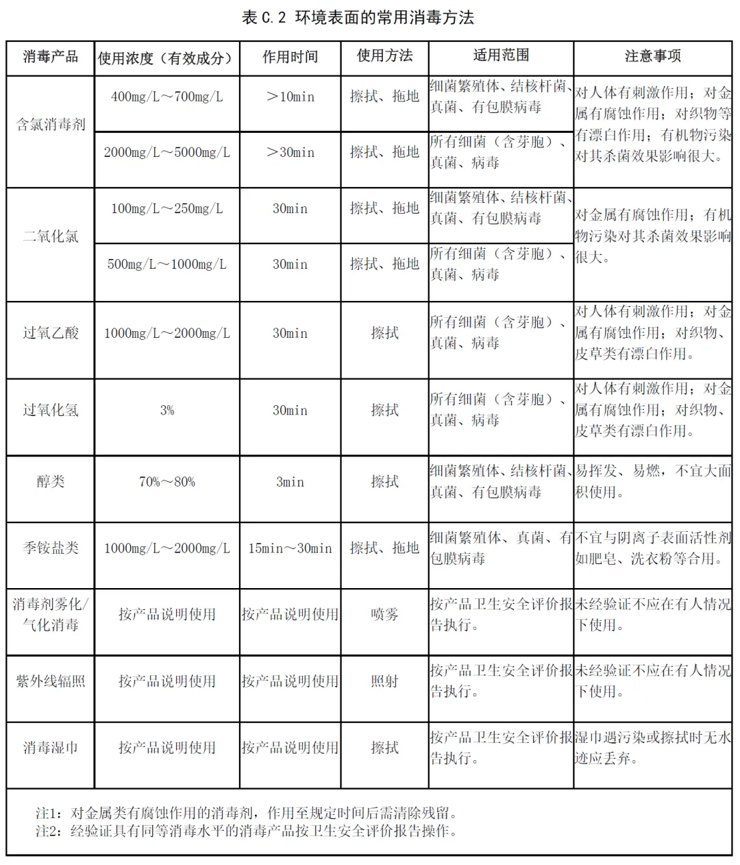 6.5 常用环境表面消毒剂杀灭微生物效果和使用方法见附录C。