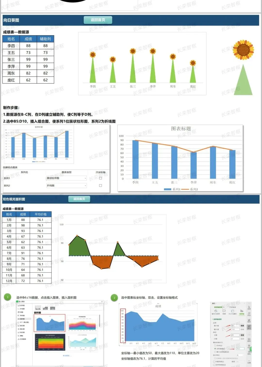 覆盖日常办公、数据汇报、课件制作等所有场景,每种都附详细制作步骤,新手跟着做也能快速上手,再也不用为图表颜值发愁~