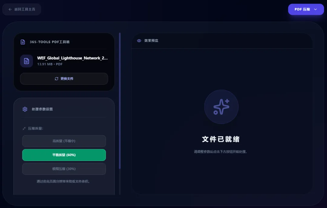功能: 这个功能可以通过智能算法,在保持清晰度的前提下,大幅降低 PDF 文件的大小。以前几百兆的文件,现在一键“瘦身”,上传发送秒成功。