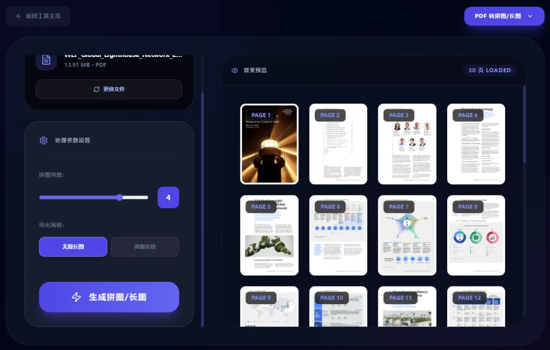 2. PDF 转拼图/长图(手机阅读/分享必备)
