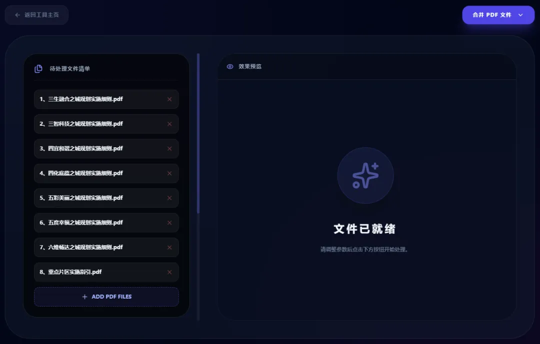 功能: 将多个 PDF 文件无损合并为一个。不管是发票归档还是整理电子书,都能整理得井井有条。