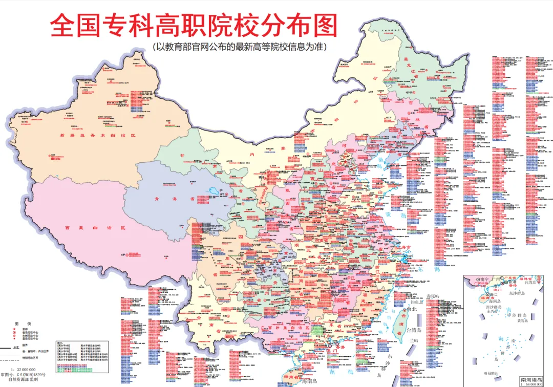 免费下载!1154所专科、1365所本科高校高清地图