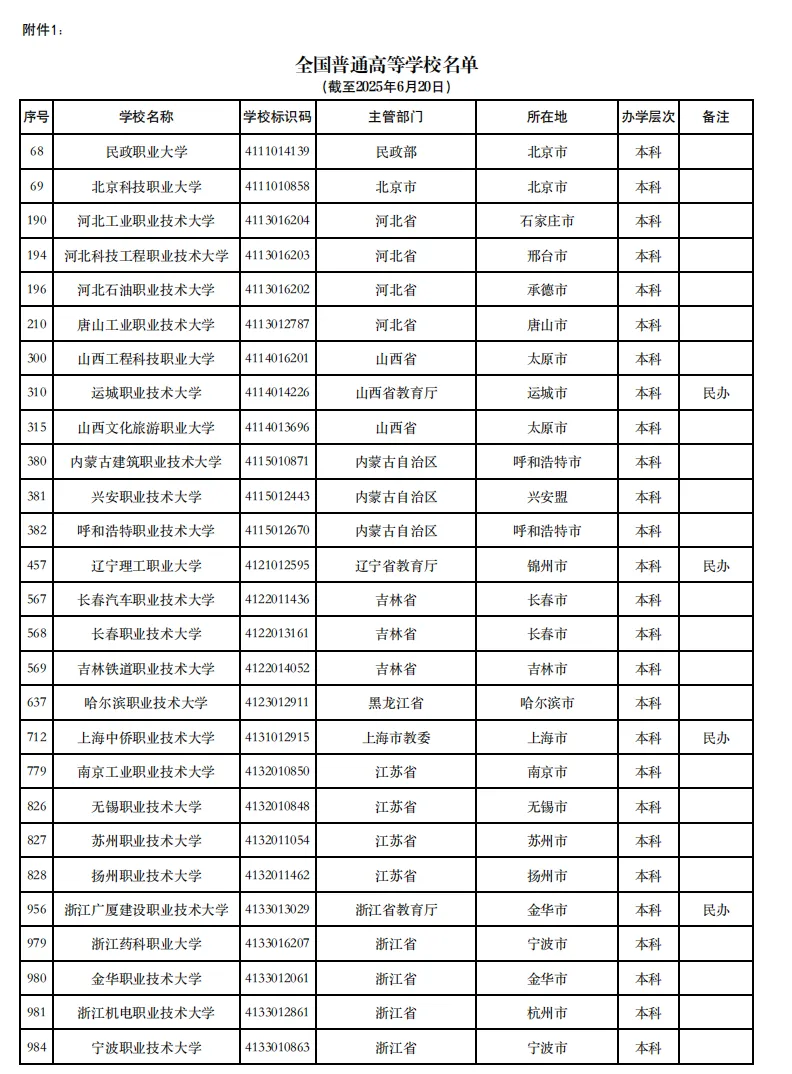 近日,教育部发布最新《全国高等学校名单》!