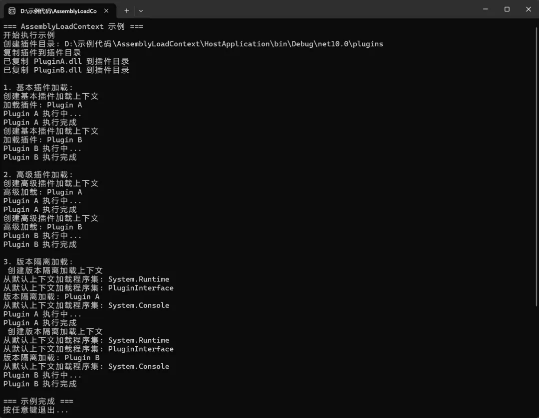 • 程序集隔离:就像给每个插件一个独立的房间,它们可以使用自己的依赖版本 -