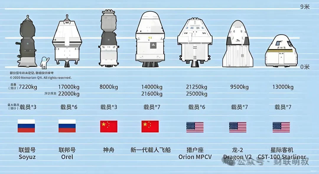 直径约4.5米,这是最关键的一个尺寸。作为对比,神舟飞船返回舱直径约为2.5米,而美国SpaceX的载人龙飞船直径约为4米。