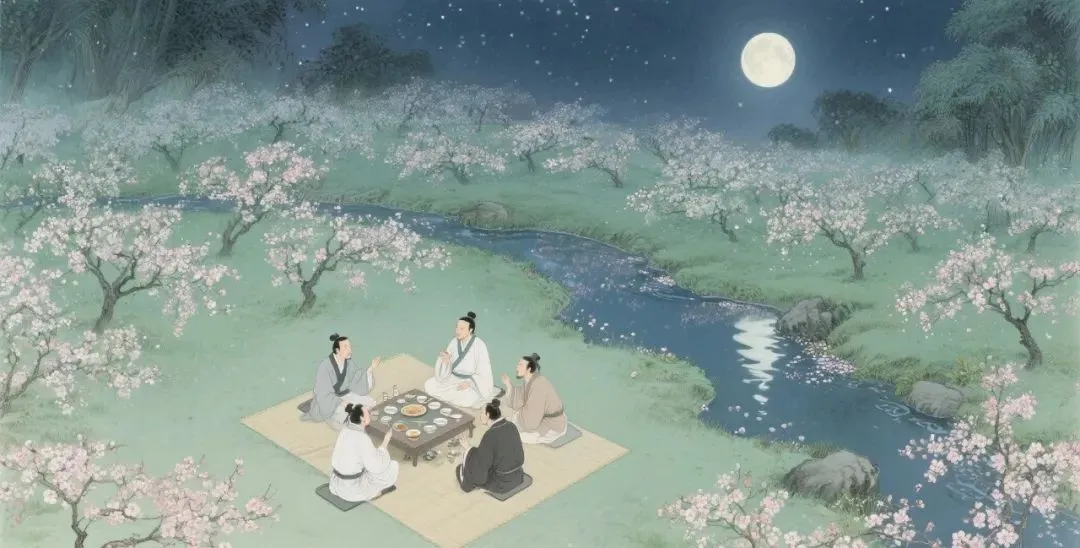 到亭上,有两人铺毡对坐,一童子烧酒炉正沸。见余,大喜曰:“湖中焉得更有此人!”拉余同饮。余强饮三大白而别。问其姓氏,是金陵人,客此。及下船,舟子喃喃曰:“莫说相公痴,更有痴似相公者!”