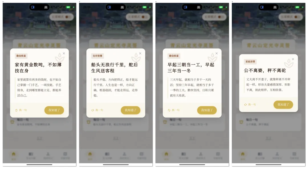 每日推送一则禅意名句或民间谚语,提醒我们在繁忙生活中,不忘静心自省。