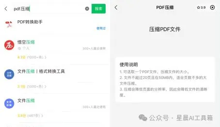 微信小程序中提供了许多便捷的 PDF 压缩工具,无需下载 app,直接在手机上操作。