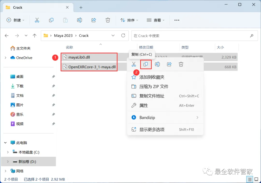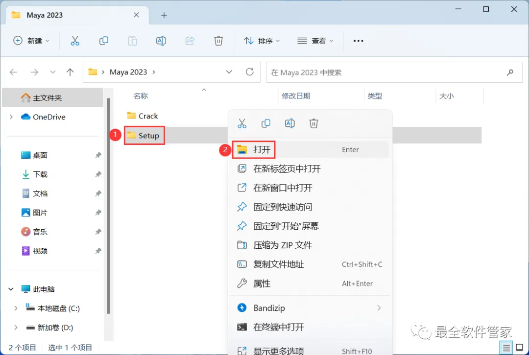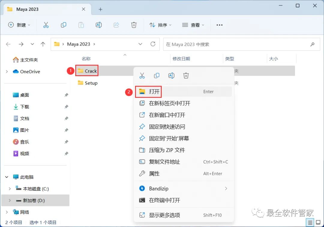10、回到Maya 2023文件夹,找到【Crack】文件夹,右键【打开】它