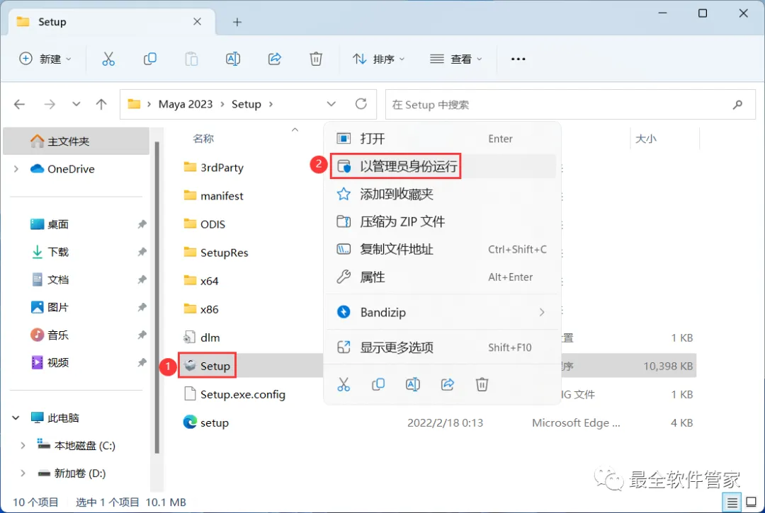 4、找到【Setup】应用程序,右键选择【以管理员身份运行】它