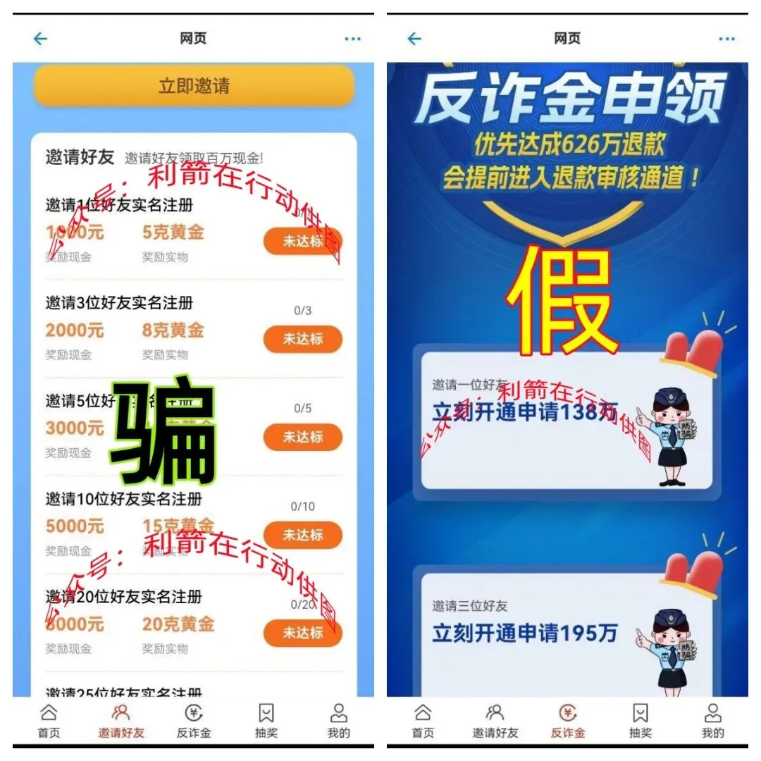 该APP中宣传“只要实名认证注册,可获得3万元,500克黄金,最高可获得626万元资产返还,邀请1人注册,反诈金申领138万元,邀请3人注册,反诈金申领195万元,邀请5人注册,反诈金申领293万元………..”,“邀请1人注册可获得1000元,5克黄金,邀请3人注册可获得2000元,8克黄金,邀请5人注册可获得3000元,10克黄金,邀请10人注册可获得5000元,15克黄金,邀请20人注册可获得8000元,20克黄金……………”???