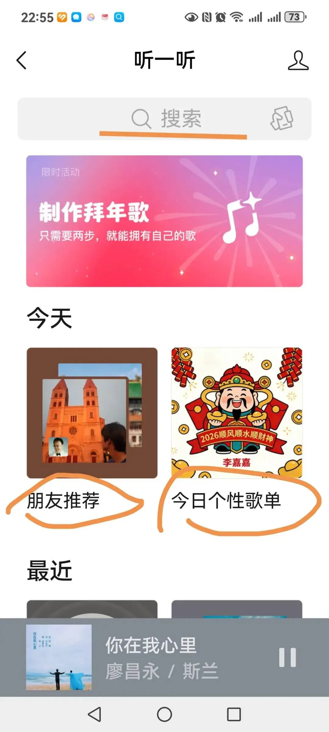 – 搜自己喜欢的歌手、老歌、戏曲