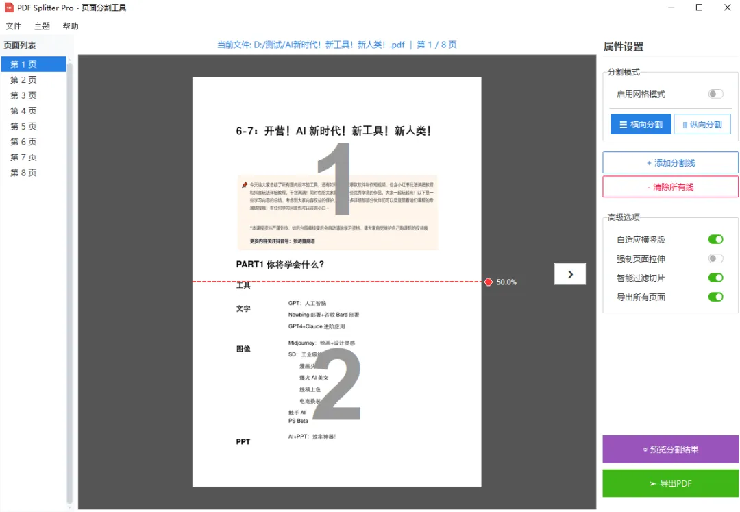 PDF页面分割器,自由拆分工具