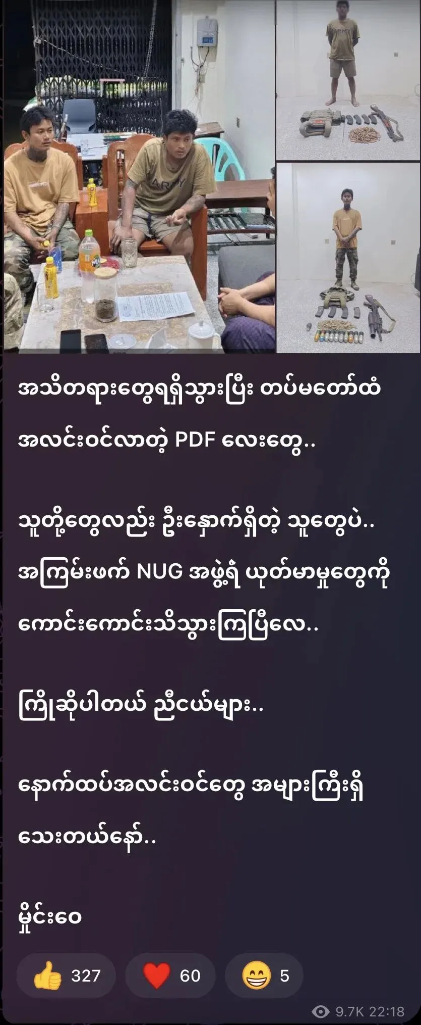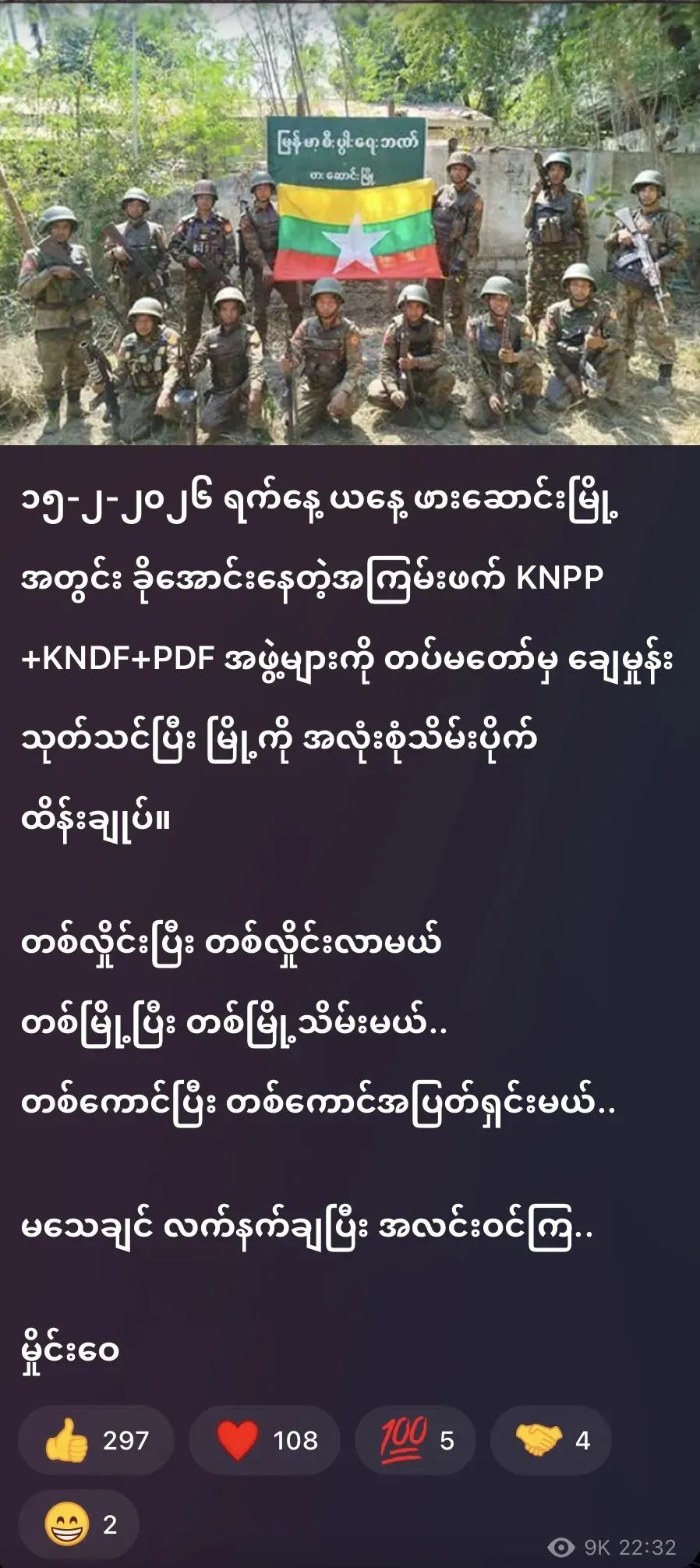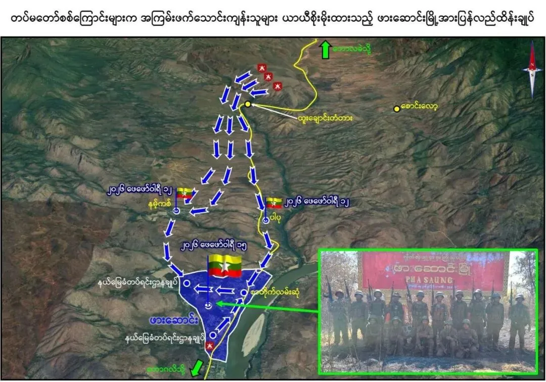 2026年2月15日,今天,国防军对盘踞在帕桑镇内的KNPP,KNDF及PDF武装组织进行清剿行动,并已全面收复并控制该镇。