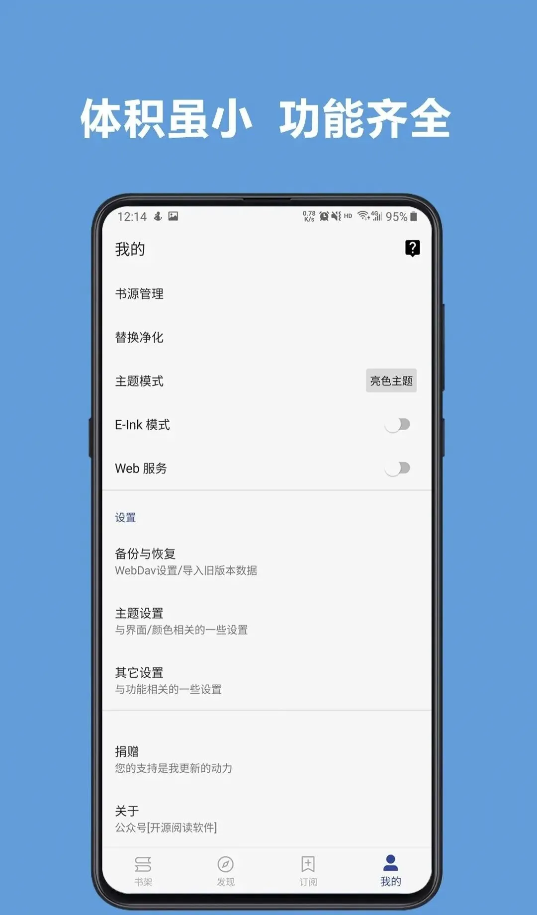 – 定位:手机最强小说阅读工具,支持导入书源、换源阅读、朗读、排版自定义