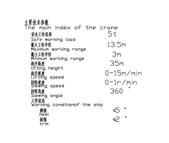 船用克令吊图,起重5吨,吊臂长度13.5米,PDF文件图