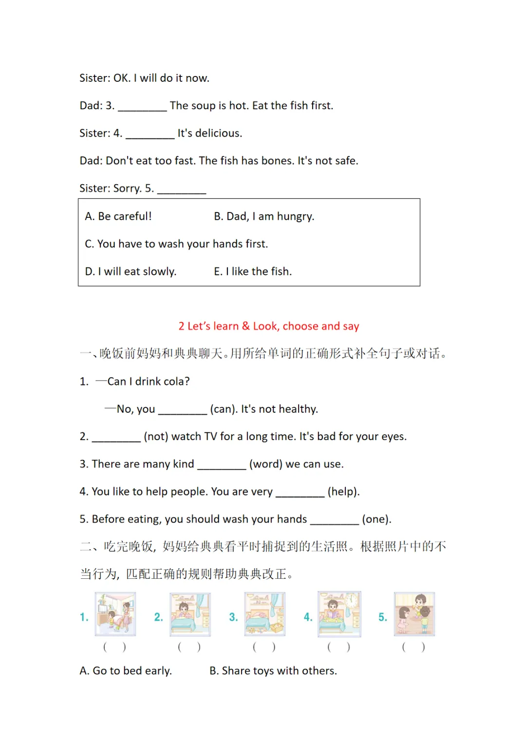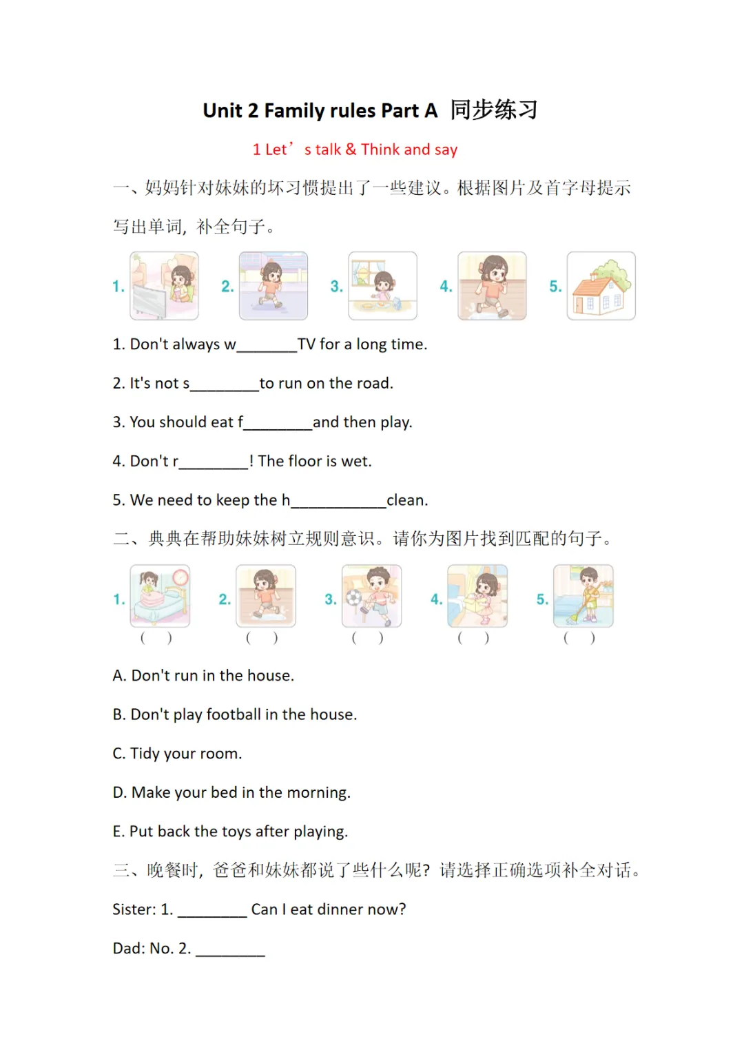 【免费下载】四年级(下)英语 Unit 2 Family rules Part A 同步练习《人教版PEP》,PDF电子版,共6页,可打印