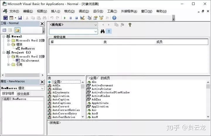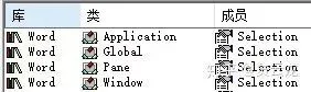 3、如果不知道从哪获得实现该功能的对象,则可以使用word宏编辑器的对象浏览器(F2键),具体见前文Selection部分
