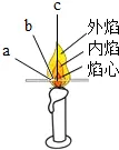 (2)点燃蜡烛,观察到蜡烛的火焰分为外焰、内焰、焰心三层,把一根火柴梗放在蜡烛的火焰中,如图所示,约1s后取出,可以看到火柴梗的_____处最先碳化。结论:蜡烛火焰的_________部分温度最高。