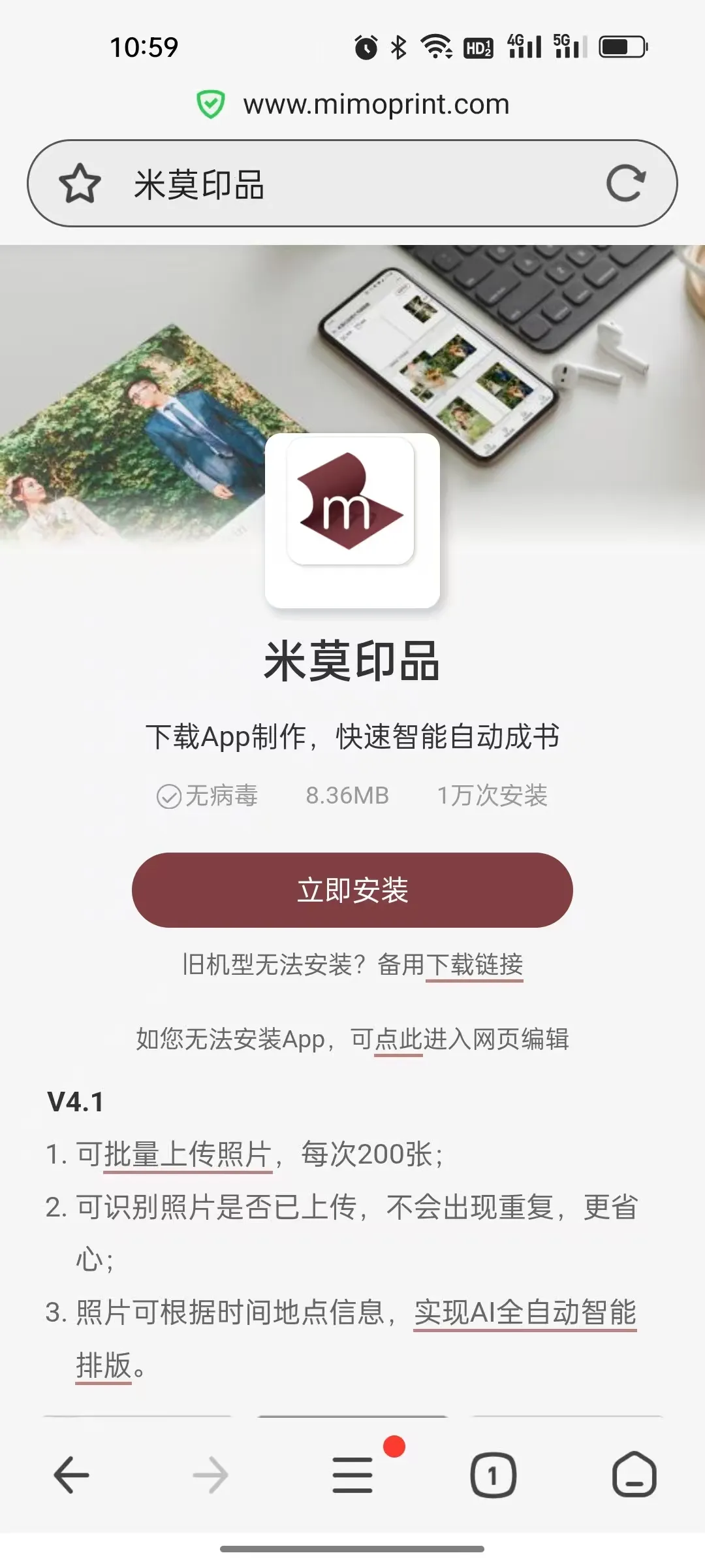 对安卓手机来说,米莫印品APP隐藏得比较深,搜索、下载、安装还是比较曲折的。