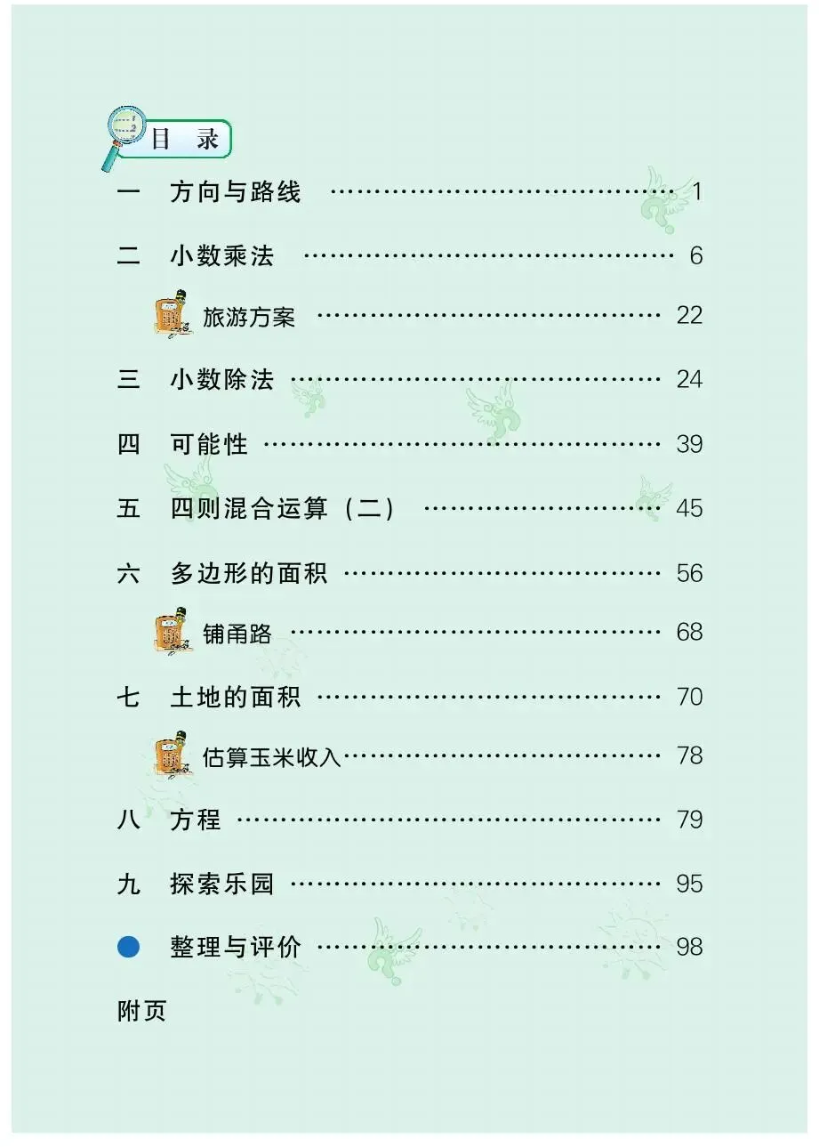 以下为部分内容展示,下载完整冀教版版小学五年级数学上册电子版教材,本教材是2026年春季最新版,请到页尾【免费资料下载】。