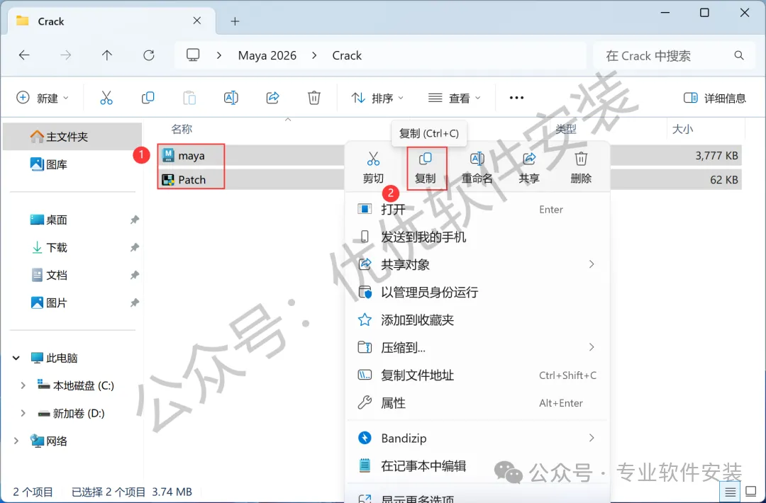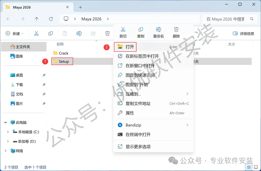 10、回到Maya 2026文件夹,找到【Crack】文件夹,右键【打开】它