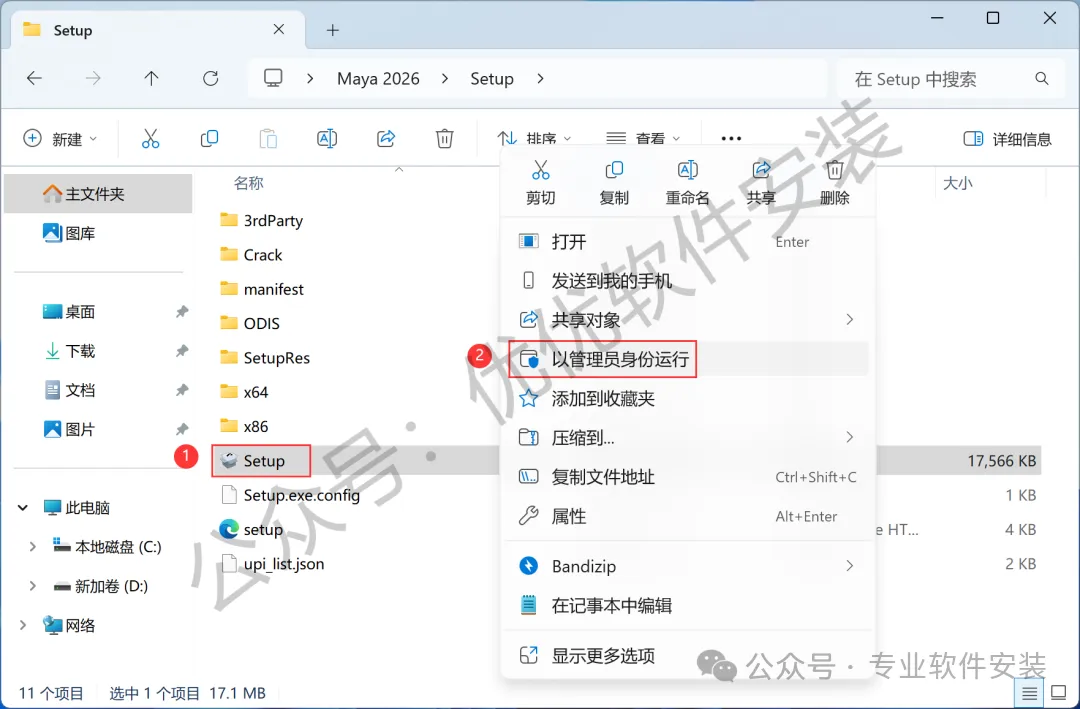 4、找到【Setup】应用程序,右键选择【以管理员身份运行】它