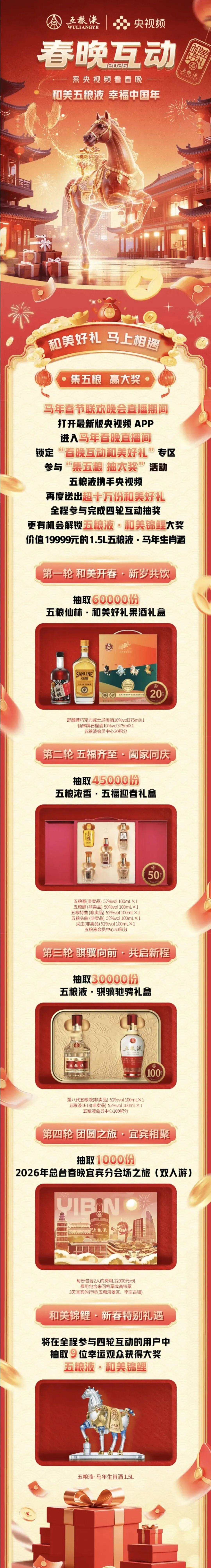 就在央视频APP春节晚会抽近13.6万瓶五粮液,利润几十至几百上千不等