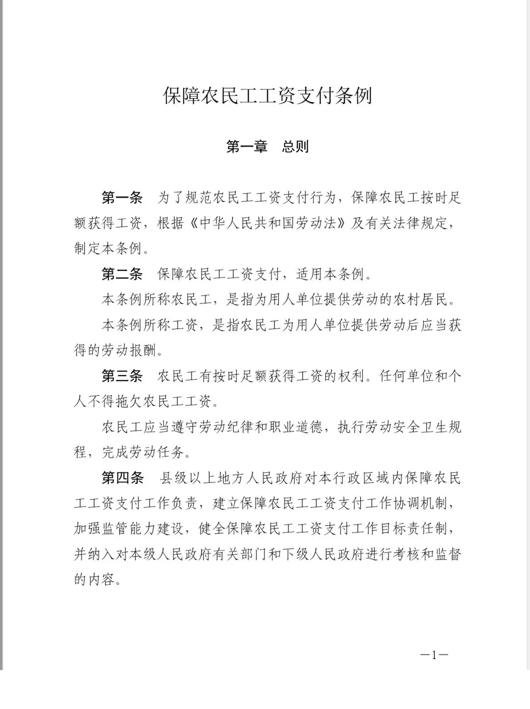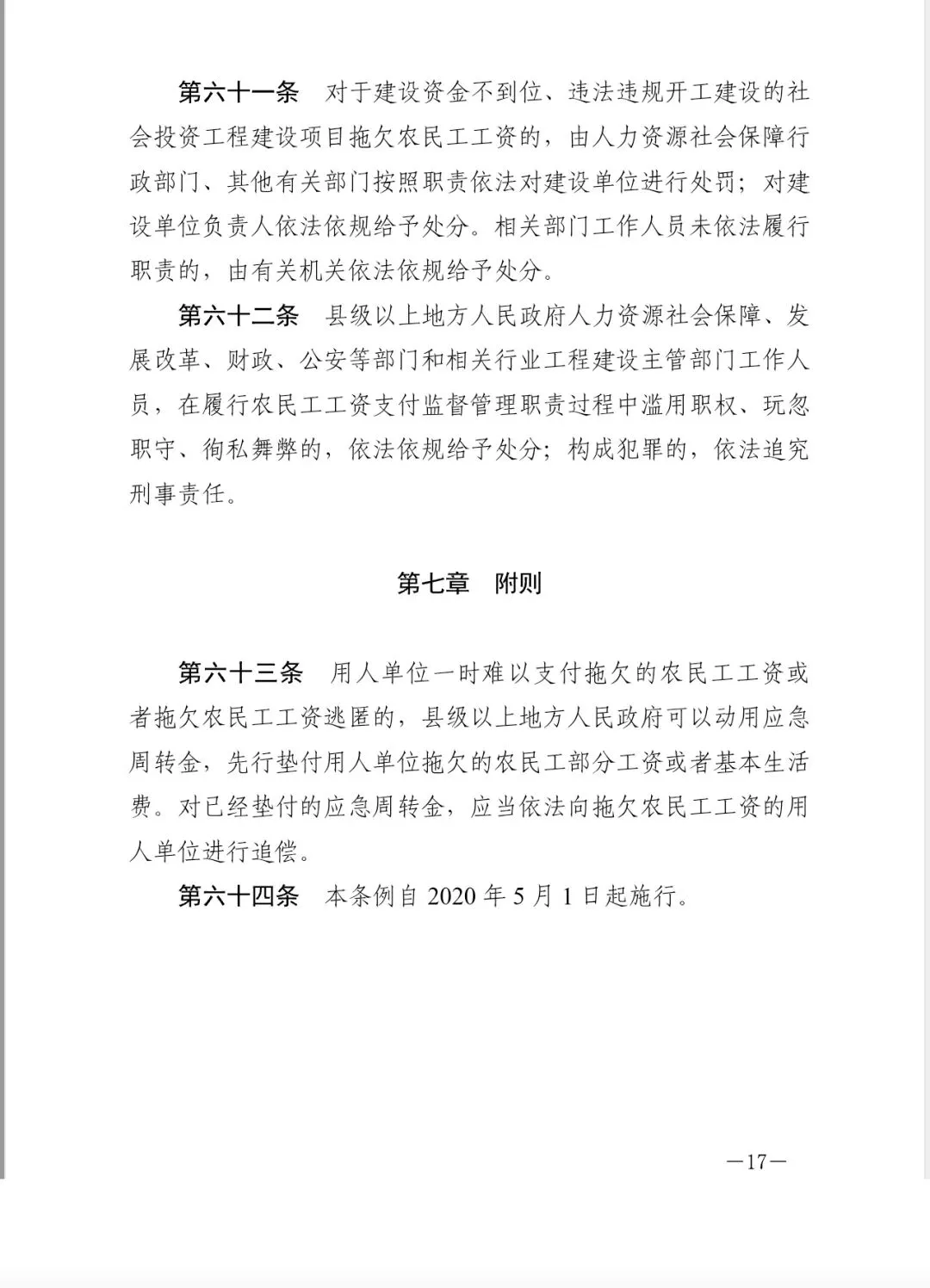 《保障农民工工资支付条例》