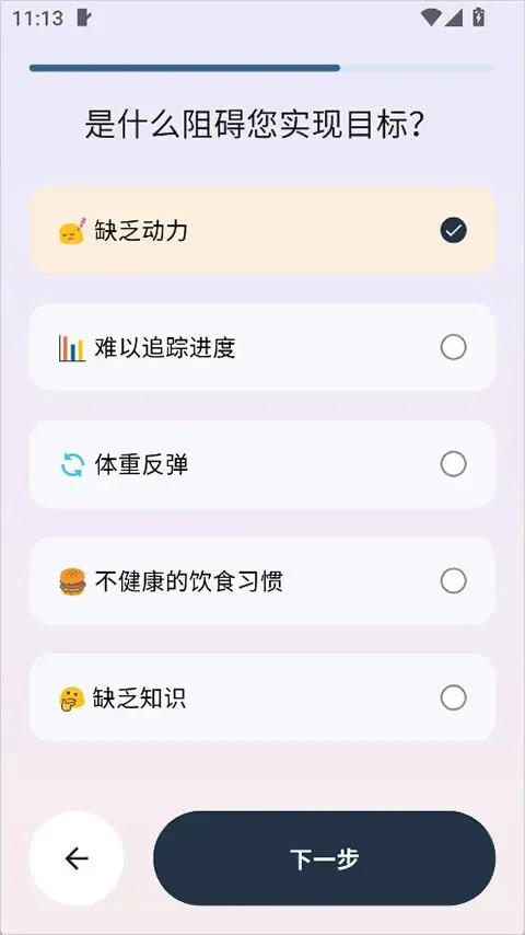 3、然后选择阻碍你实现目标的原因,以便app里的AI给你制定好适合你的计划