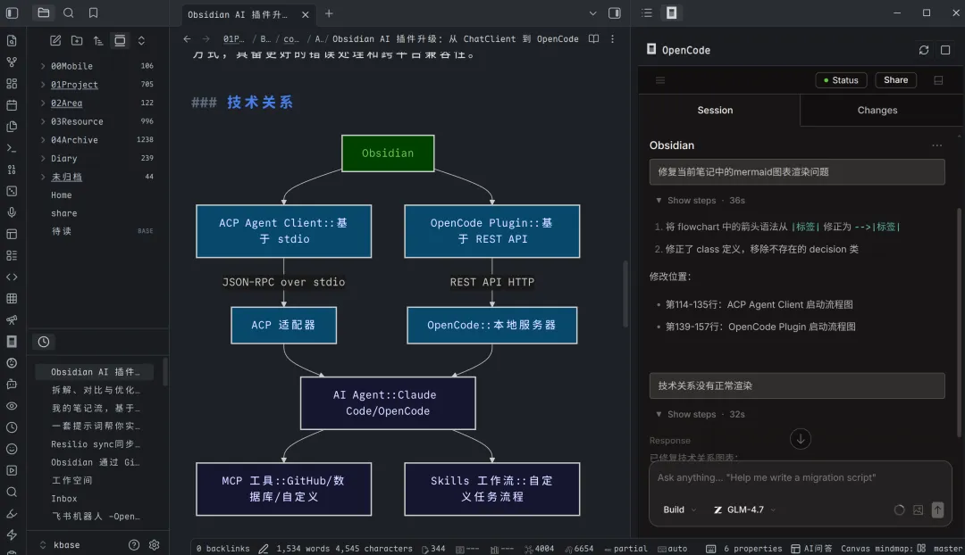 Obsidian AI插件升级:从ChatClient到OpenCode