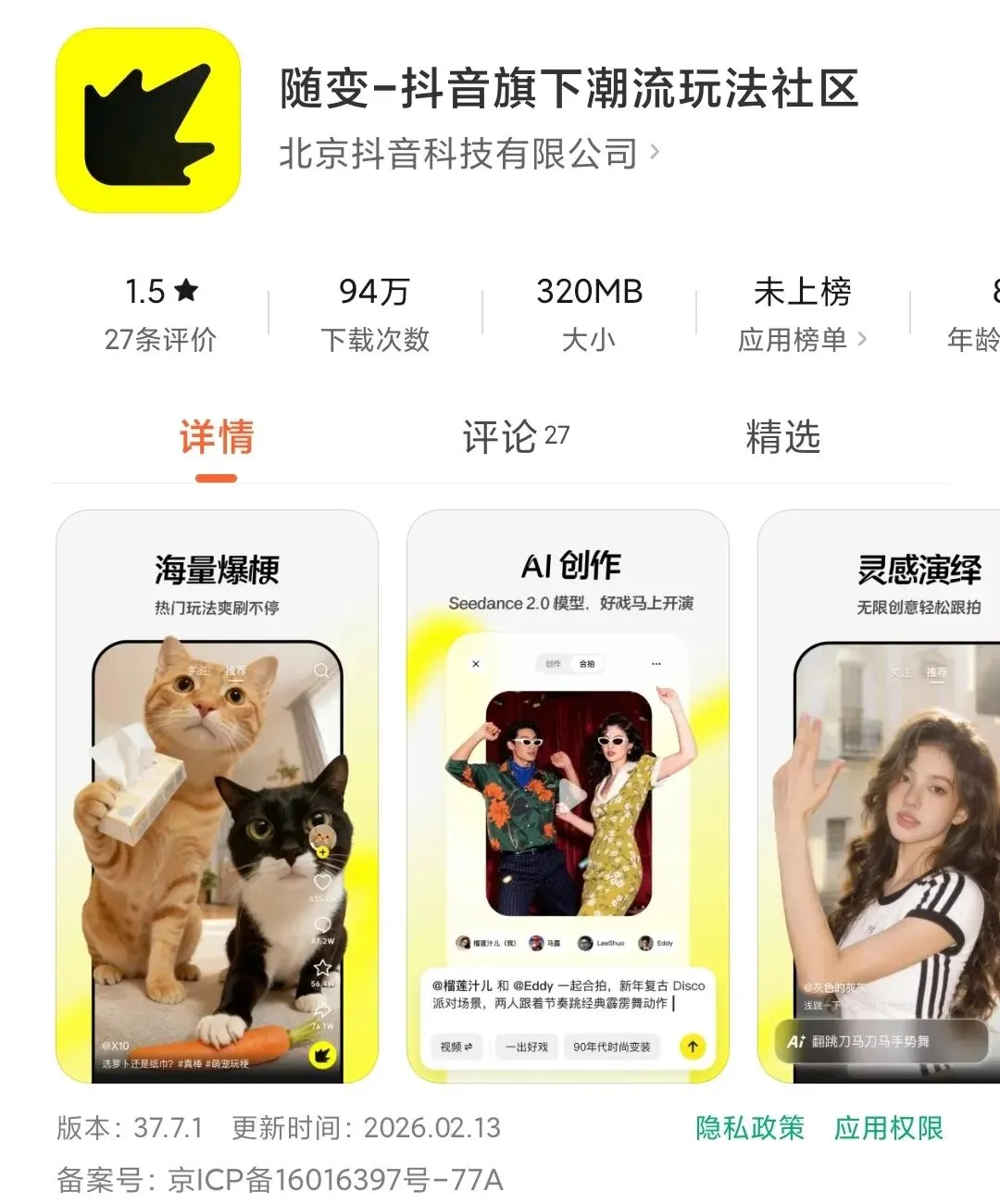 作为字节跳动“AI赛马”矩阵中的一员,随变APP定位是面向年轻人的AI潮流社区。