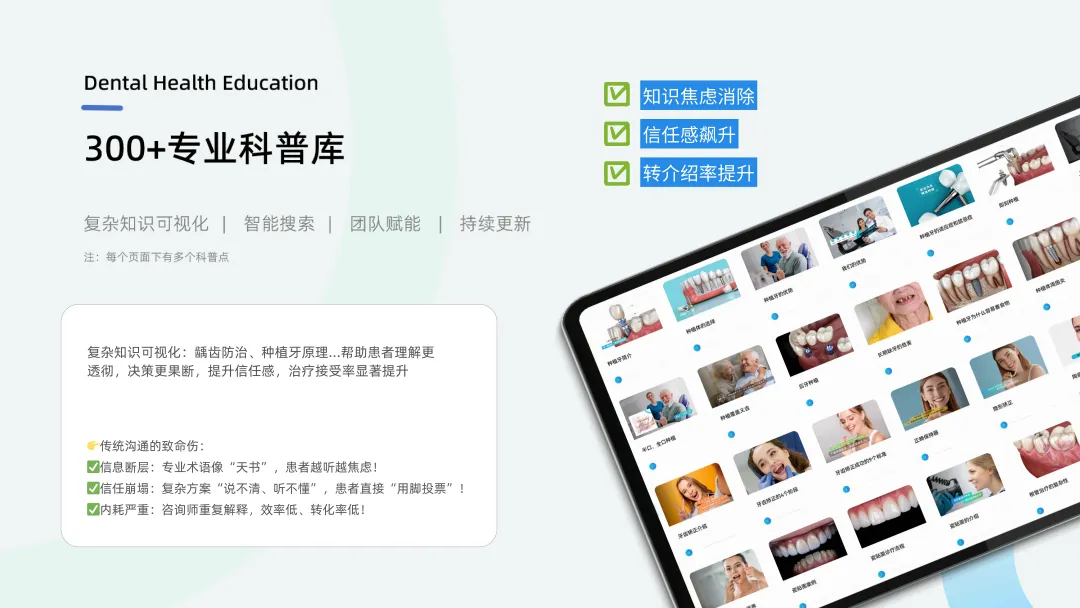 种植流程、牙周防治等复杂知识 “秒懂动画” ,患者决策更果断;