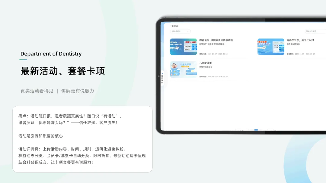 接待期:调取机构/医生IP页 + 活动卡项 → 建立初步信任