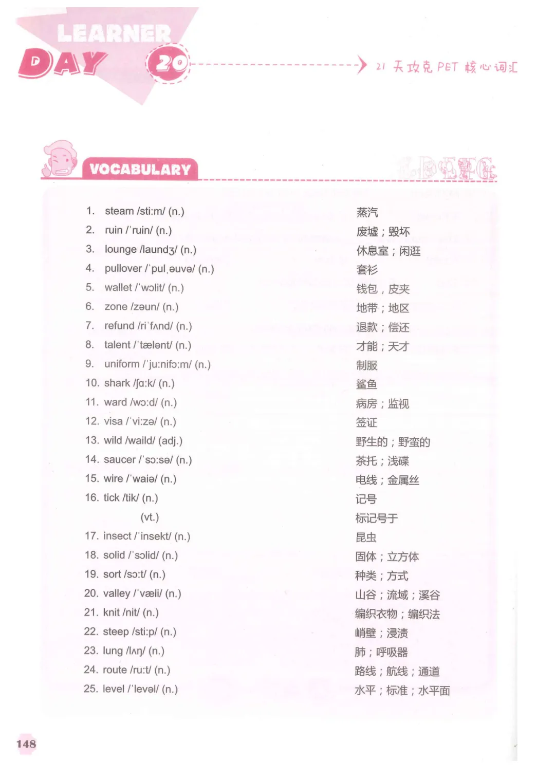 【Day20】21天攻克PET词汇-附PDF下载+音频