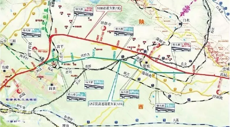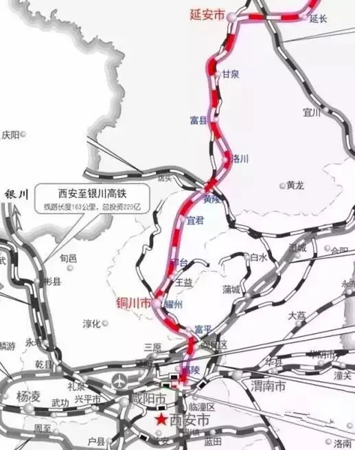 “西安-韩城”城际铁路,经国际港务区、高陵区、阎良区,富平县、蒲城县、澄城县、合阳县至终点韩城市。