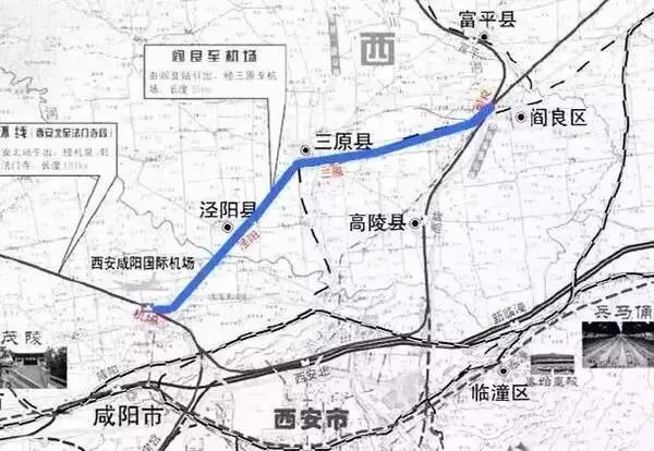 自西延高铁富平阎良站起,经三原、泾阳、机场东航站楼,未来将向南延伸至西成高铁阿房宫站。